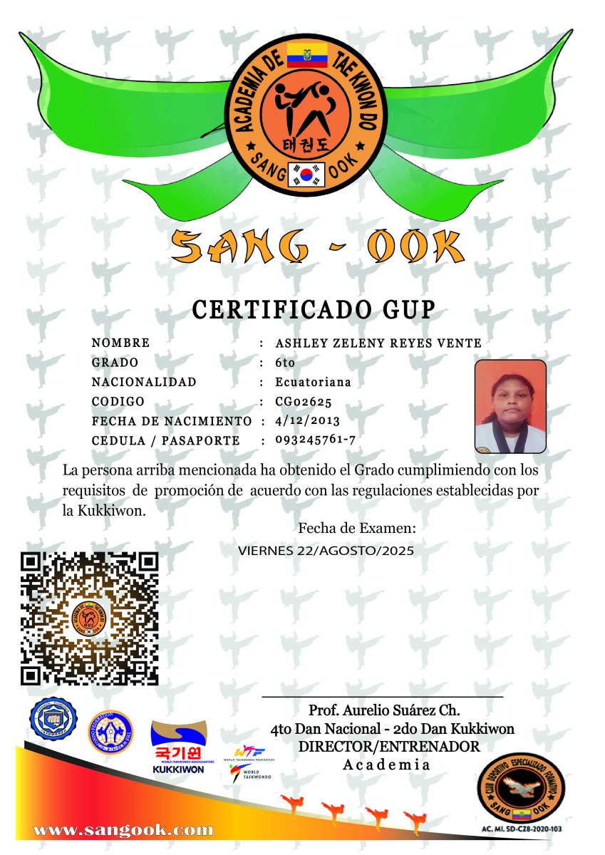 Cinturones Para validación de los grado gup emitido por está Academia marcial ..Debe reposar el diploma tanto de manera virtual en la web como en físico. Certificados diplo-tkd » ashley-zeleny-reyes-vente-tkd