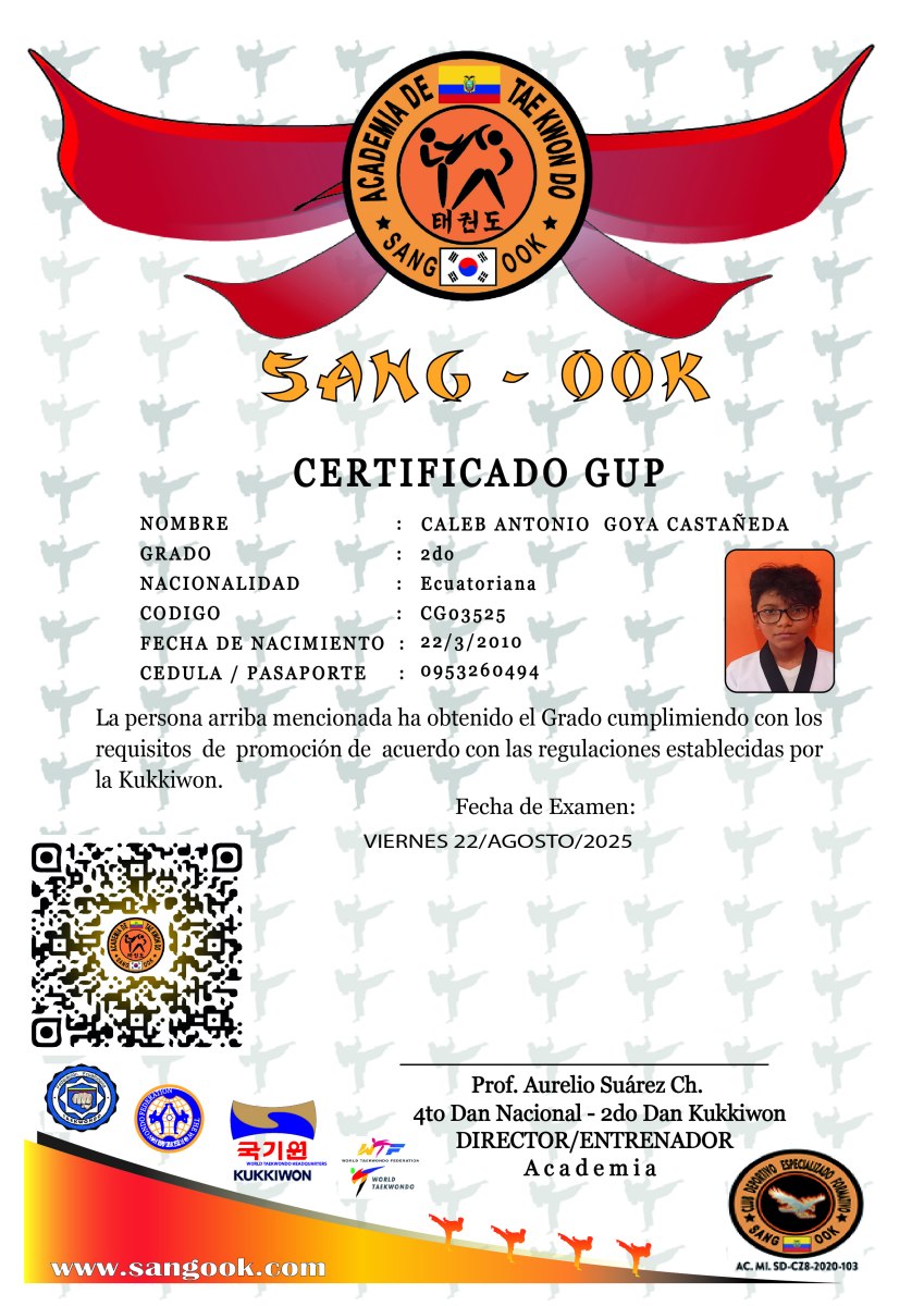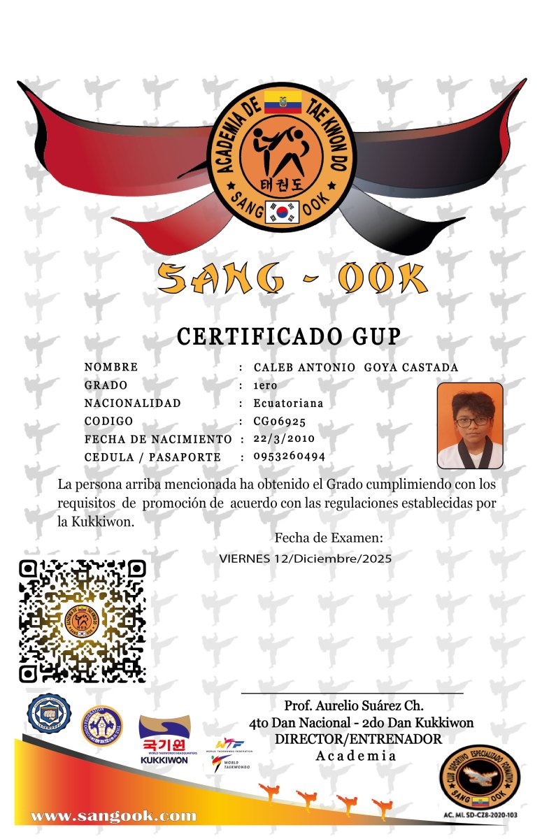 Cinturones Para validación de los grado gup emitido por está Academia marcial ..Debe reposar el diploma tanto de manera virtual en la web como en físico. Certificados diplo-tkd » C-GOYA-C-TKD