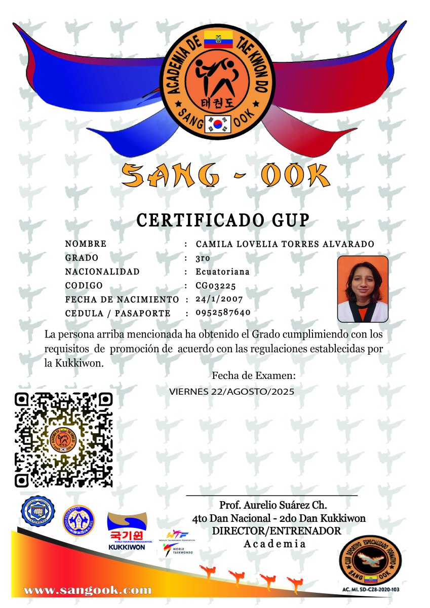 Cinturones Para validación de los grado gup emitido por está Academia marcial ..Debe reposar el diploma tanto de manera virtual en la web como en físico. Certificados diplo-tkd » c-torres-a-tkd