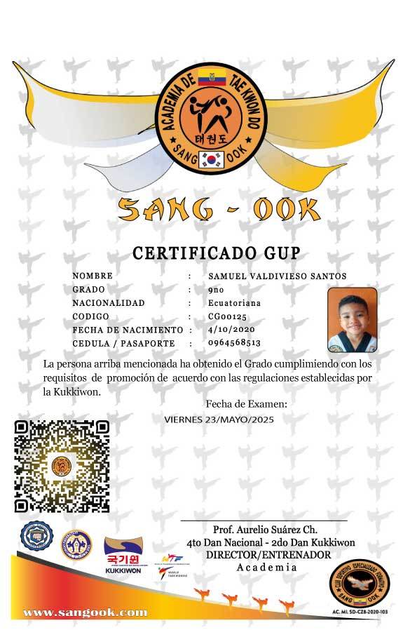 Cinturones Para validación de los grado gup emitido por está Academia marcial ..Debe reposar el diploma tanto de manera virtual en la web como en físico. Certificados diplo-tkd » samuel-valdivieso-santos-tkd